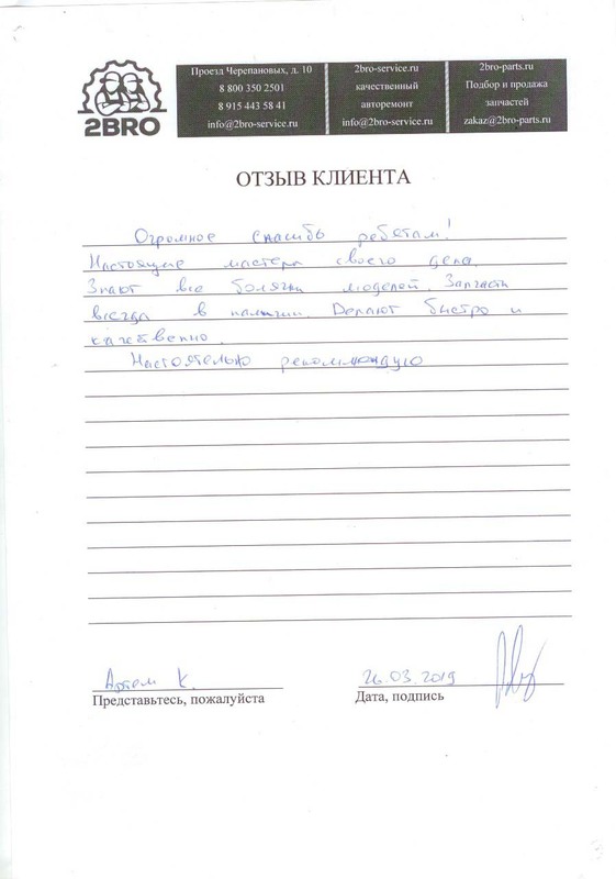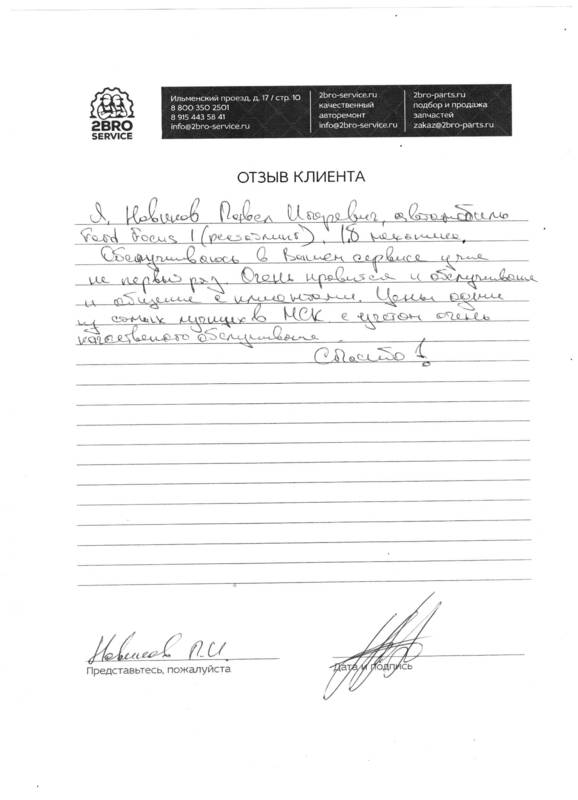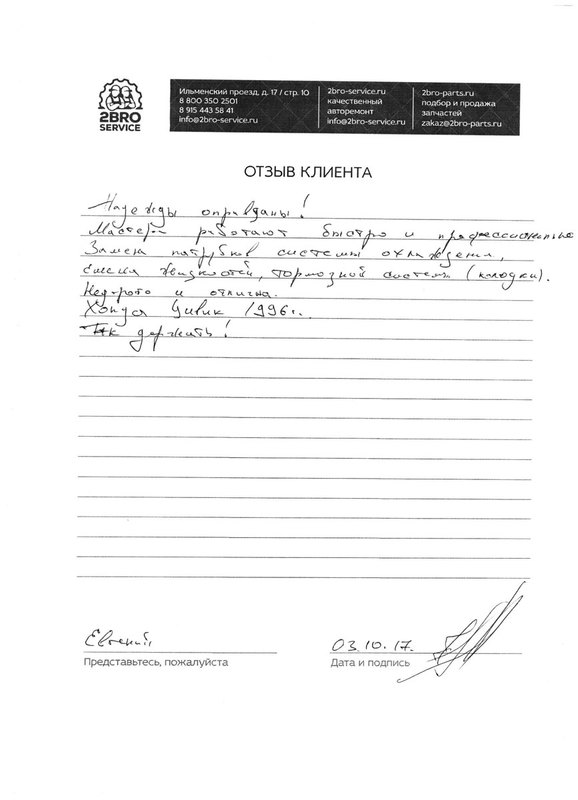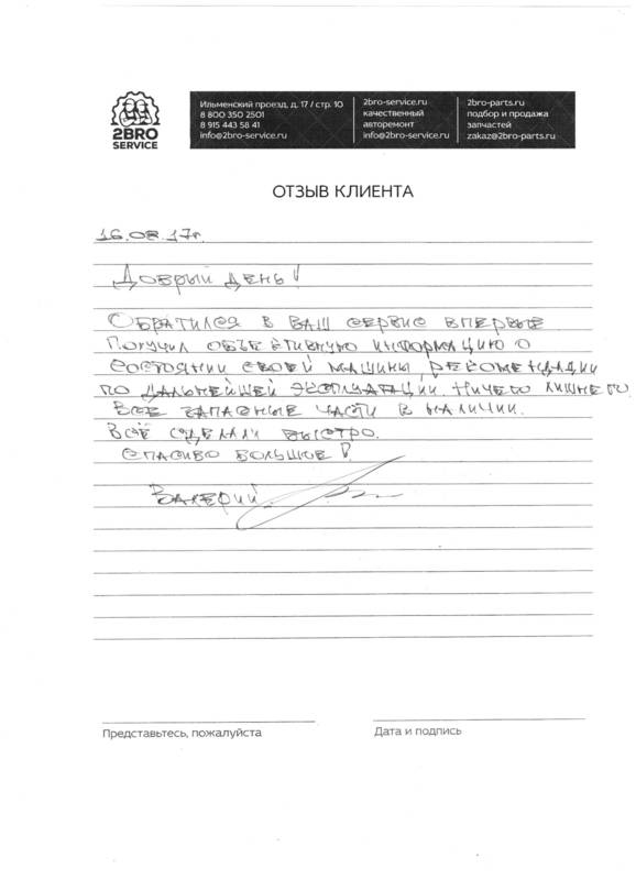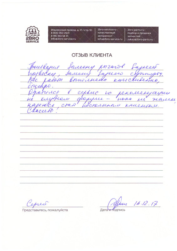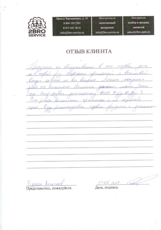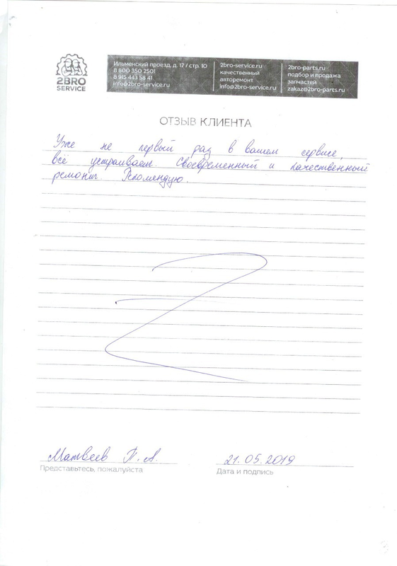 В своей работе мы руководствуемся принципом "довольный клиент - постоянный клиент". Мы тщательно подходим к диагностике автомобиля, тем более, что у нас огромный опыт в этом деле. Мы любим свое дело и всегда выполняем качественный ремонт, чтобы Вы остались довольны. В нашем автосервисе Вам НЕ порекомендуют дешевые запчасти, которые прослужат несколько месяцев, после чего автомобиль опять попадет в сервис. Довольный автовладелец - залог хороших рекомендаций, что очень важно в нашем бизнесе.